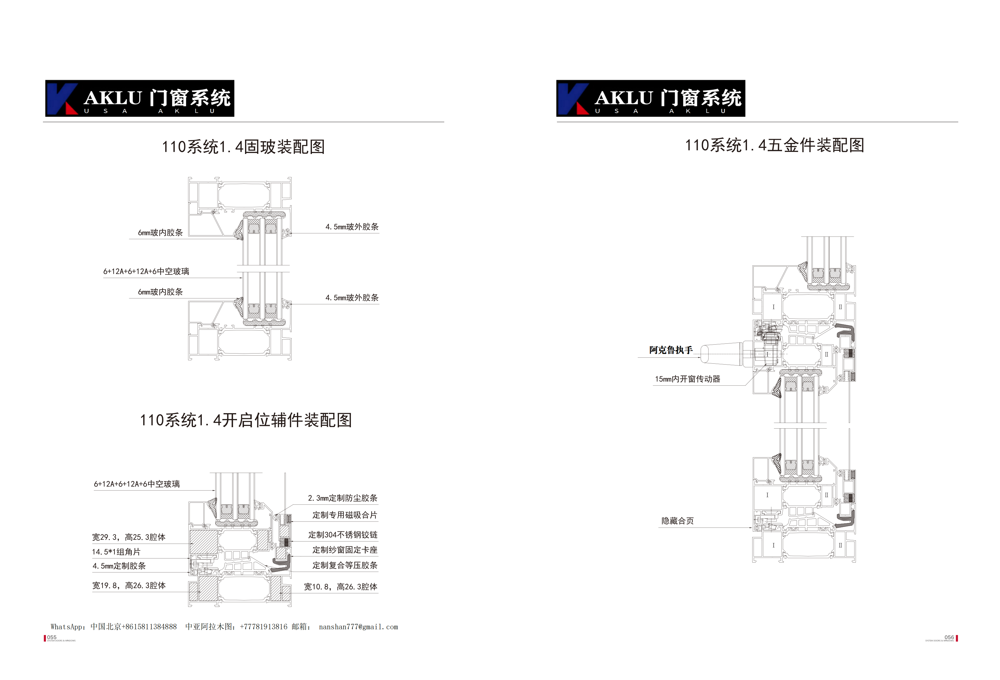 Серия AKLU110 — это энергосберегающее интегрированное окно со стальной сеткой, имеющее плоскую конструкцию внутри и снаружи для улучшения визуальной эстетики. Используется процесс инжекции клея с помощью штифта, а соединение центральной опоры использует процесс инжекции клея с помощью соединителя для улучшения водонепроницаемости, герметичности, теплоизоляции и звукоизоляции. Конструкция невидимого желоба позволяет улучшить обтекаемый вид окна; Дополнительно можно заказать декорирование световой полосой. Невидимые сливные канавки также являются опцией, а дренажная система в полу стандартно оснащена: пылезащитными полосами, стальными листами и противопросадочными блоками.