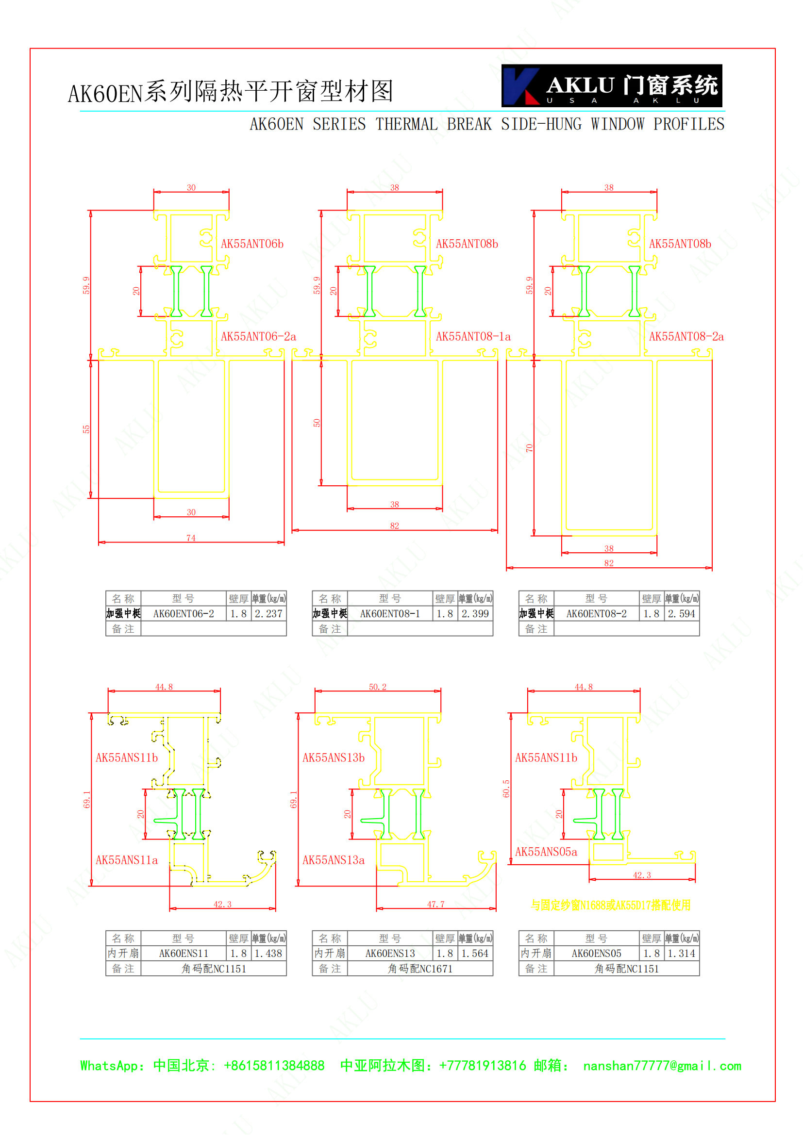 Энергосберегающие односекционные инженерные двери и окна серии AKLU 60
